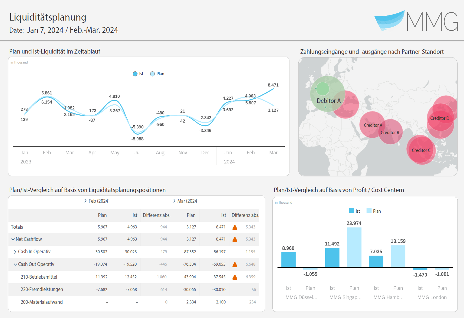 Ergänzend empfiehlt sich die Integration der Unternehmensplanung aus dem Controlling in die Liquiditätsplanung. Per Mapping von Planpositionen auf Cashflow-Positionen lassen sich Langfristpläne direkt in SAC zu einer Liquiditätsplanung weiterverarbeiten. Geldwerdungsfaktoren (z. B. Zahlungsbedingungen oder Zahlungsverhalten) können im Rahmen der Überleitung berücksichtigt werden und ermöglichen eine realitätsnahe Abbildung.
